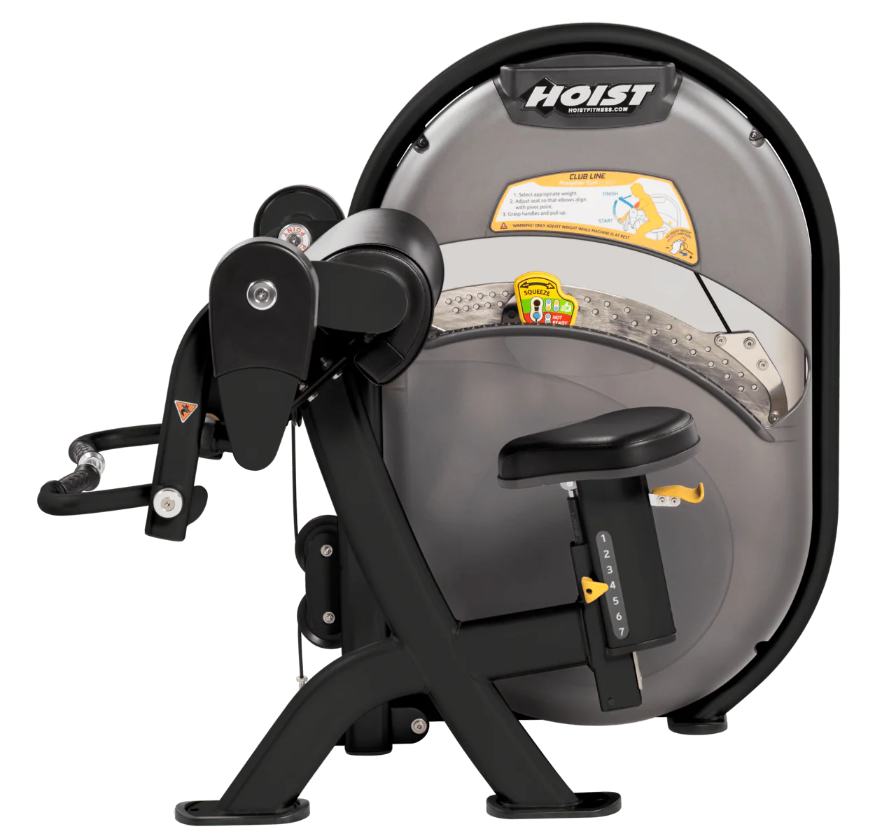 The new Club Line from Hoist Fitness offers a smaller and quieter option for club owners looking for more space in their facility with the high-end equipment that only Hoist can provide. With no guide rods or selection pins, the Club Line's Slide Select system has fewer friction points and a smooth, quiet function. Additionally, the Slide Select system features a solitary weight system allowing for adjustments in five-pound increments on the two hundred and three hundred pound systems.