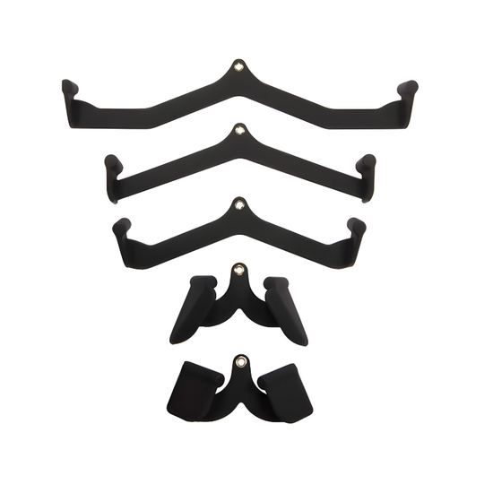 L'ensemble de barres pour poulie Gymnetic offre des barres de couleur noires avec un recouvrement en polyuréthane et des poignées aux extrémités angulaires pour mieux isoler les muscles travaillés / diminuer la tension sur les avants-bras. Parfait pour un entraînement des dorsaux en toute sécurité et confort.